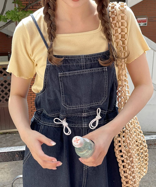シンプルなTシャツですが袖と裾のメロウデザインがワンポイントになったトップスです?スクエアネックが顔まわりをすっきり見せてくれ、デコルテもきれいに見えます!薄手の生地で夏も快適に着られ、ベーシックなデザインなので着回しの効くアイテムです!