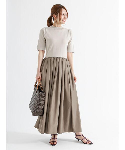 忙しい時でもスタイリングが即決まるドッキングデザインのワンピース。 トップス部分は上品なハイネックとタイトめのシルエットですっきりとした印象に。 スカート部分はウエストにギャザーをよせ、立体感のある華やかなフレアラインに仕上げました。 シンプルでスタイリングもしやすく、日常使いからオフィスなどのシーンにと、幅広く活躍してくれるアイテムです。 ※商品画像は、撮影環境やお客様のご利用のPC・スマートフォンのモニター環境などにより実物と色味に差異がある場合がございます。 【その他採寸】 F ウエスト:[後ゴム仕様]70cm