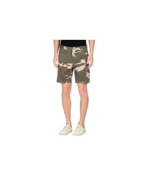 HYDROGEN Bermudas. plain weave, camouflage design, mid rise, logo detail, button, zip, multipockets, cargo. 100% Cotton