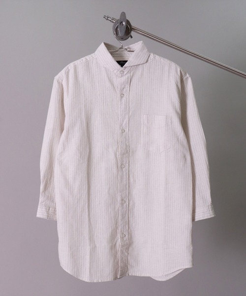 ●カラー名のみの色はソリッドカラー ●カラー名にその他,その他2がついた色はシャンブレーカラー ●カラー名にその他3がついた色はストライプカラー 【綿麻/コットンリネン】 ブレンド生地は、良い特徴が増え、悪い特徴が半減するのでより快適に着用することが出来ます。 ・綿は【吸水性】【通気性】に優れており、適度な【保温性】もあります。 ・麻やリネンは【自然なナチュラル風合い】が楽しめ、少しザラザラした手触りです。 【吸水性】が【綿の約4倍】【シルクの約10倍】あると言われています。 水分を含むと【生地の強度】が【60%ほど高くなる】ので、洗濯の耐性があります。 麻やリネン素材は、【通気性が良く】【清涼感】があるので春夏のアイテムに最適。 【シャンブレー】生地の中に霜降りのように白い糸が垣間見える、独特な質感を持つ生地のこと。 経糸と緯糸を交互に編んでいく平織り生地の一種で、経糸に色の糸、緯糸には白糸を使って織っています。 表面の布に糸が均等に現れ、【霜降り】つまり霜のように白糸がぽつぽつと見えます。 【デニム生地のように色落ちが目立たない】のが生地の特徴です。 シャンブレーは【平織り】、デニムは【綾織り】。 【ホリゾンタルカラー/カッタウェイカラー】 角度がほぼ180度まで開いた衿がホリゾンタルワイドカラーです。 ホリゾンタルとは「水平」という意味。 また、ほぼ同じ形ですが、襟の角度が190度以上に開いた衿型をカッタウェイカラーと呼ぶこともあります。 【商品情報】 ●サイズ感 ⇒ レギュラーシルエット/レギュラーフィット ●ストレッチ性 ⇒ 無し ●透け感 ⇒ 白のみ若干 ●生地の厚み ⇒ 一般的なシャツ地 ●裏地 ⇒ 無し ●素材 ⇒ 布帛/綿麻 平織り/コットンリネン ●袖丈 ⇒ 7分袖/半端袖 ●ネックライン ⇒ 台衿付き/ホリゾンタルカラー/カッタウェイカラー ●プリント ⇒ 無し ●仕様 ⇒ ボタン前開き/袖口カフス仕様/後ろ身頃にダーツ入り ●ポケット ⇒ 胸ポケット1 【商品のお気に入り登録】 ♡をクリックして下さい。 完売カラーの『再入荷』、ラスト1点になった時の『通知』、セールの『通知』を受け取ることが出来ます。 【ショップ・ブランドのお気に入り登録】 新商品や再入荷のお知らせなどの『新着情報』を受け取ることが出来ます。 【ご注意下さい】 ①キャンペーン等により、販売中に価格が変動することがございます。 ②セールは予告なく終了させて頂く場合がございます。 ③商品画像はモニター環境や日光・フラッシュ・商品の色によって実物の商品と色味の印象に違いがある場合がございます。 ご了承下さい。