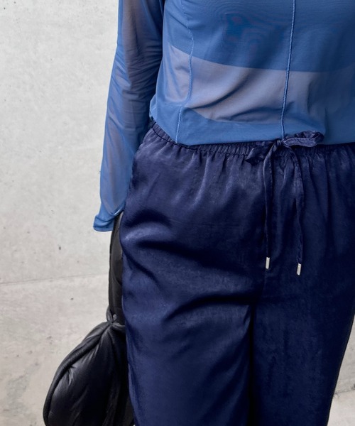 y/m×RIKA上品な光沢のあるサテン生地が大人な印象のジョガーパンツ。■デザインウエストと裾がゴム仕様で着脱も履き心地もイージーなジョガーパンツ。生地が上品な光沢のあるサテンなので洗練されて大人っぽいおとなっぽく着用していただけます。IVORYは少し透け感がありますが裏地付きなので安心して着用していただけますが念の為、インナーウェアは肌色に近いものをお召しいただくことをおすすめします。裾が少し透けるのも可愛いです。■コーディネートシャツやゆるめのプルオーバーなど抜け感のあるアイテムと合わせていただくと着心地も良くおすすめです。足元はスニーカーで外したり、綺麗めなパンプスでまとめたりするのも◎【y/m×RIKA】rikasato_シンプルだけどお洒落に見える。かっこいいけど女性らしい。高そうに見えて手にとりやすい。 お洒落を楽しむ女性のちょっとワガママな気持ちに寄り添うアイテムを、カラーリングとシルエットにこだわったデザインとセレクトでお届けしていきます。【お買い物をよりお楽しみいただく為に】▼商品のお気に入り登録お気に入りアイテムの値下げ・再入荷・ラスト1点などの通知を受け取ることができます。▼ブランドのお気に入り登録新商品や再入荷、セール、クーポン配布などいち早くお得な情報を受け取ることができます。※撮影商品はサンプルの為、実際の仕様と異なる場合がございます。※画像の商品は光の照射や角度、お使いのモニター環境により、実物と色味が異なる場合がございます。品番:523GSS31-2930品名:サテンジョガーパンツ