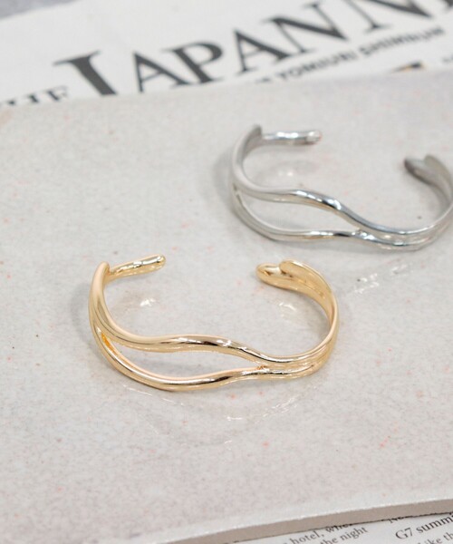 ◇fredy emue◇【2023 SS】 ウェーブラインが軽やかな印象を演出するメタルバングル●point・流れるような2本のウェーブラインが軽やかで大人な雰囲気を演出するメタルバングル・華奢でシンプルながらも、動きのあるデザインが手元を女性らしく華やかに見せてくれます・肌なじみの良いゴールドとシルバーの2色展開・艶のある上品なメタル素材で、オールシーズン着用いただけます・シンプルなデザインで幅広いコーディネートに合わせられるアイテムなので、普段使いからちょっとしたお呼ばれにも、1つ持っていると便利なアイテムです●お取扱い上のご注意●*アテンションタグを必ずご確認の上、着用又はお取り扱い下さい。*店頭及び屋外での撮影画像は、光の当たり具合で色味が違って見える場合があります。商品の色味は、スタジオ撮影の画像をご参照下さい。*商品画像に関しては出来る限り忠実に表示出来るよう努めておりますが、お客様がご利用のモニターの設定及び特性により、実際の商品と比較し色味に若干の誤差が生じる場合があります。◇商品のお気に入り登録◇【お気に入りに登録 ♡マークをクリック】を是非ご活用ください! 再入荷の通知や、ラスト1点の通知、セールの通知がいち早く届きます。◇ブランドのお気に入り登録◇新商品や再入荷など、いち早くブランドのお得情報が届きます。