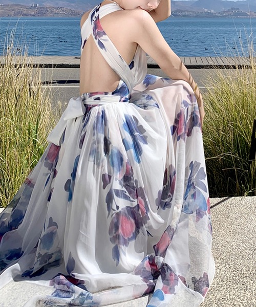 【商品説明】水彩タッチの鮮やかな花柄がシーズンライクなフレアワンピース。程よい透け感で涼し気な印象を与えてくれるアイテムです。リゾートシーンにぴったりの大きく開いたバックシルエットが女性らしさも演出します。◇コーディネート◇薄手のカーディガンやロングガウンをプラスするとよりこなれた印象に仕上がります。旅行でのリゾートコーデにも。【詳細】◇伸縮性…なし◇裏地…あり◇透け感…あり◇ファスナー…あり(後ろ部分)◇ポケット…なし◇ボタン…なし◇付属品…なし◇生地感…薄手◇素材感…柔らかいシフォン◇長めの紐になってますので後ろ部分でクロスして頂きウエスト部分でベルト風に紐を結んで頂くと綺麗に着用して頂けます。◇ホルタータイプの為バストはフリーです◇中のインナーは膝丈です◇お気に入りブランドに追加をクリックブランド最新情報やなどお知らせを受け取ることできます。◇商品のお気に入り登録→【カートに入れる】右側のハートをクリック完売カラーの再入荷やラスト1点の通知セールの通知も受け取ることができます。※入荷時期によって生地生産ロット上色の濃淡の差異が生じる場合がございます。※撮影状況の光や撮影角度により実物とお色味が若干異なる場合もございますので予めご了承下さい。