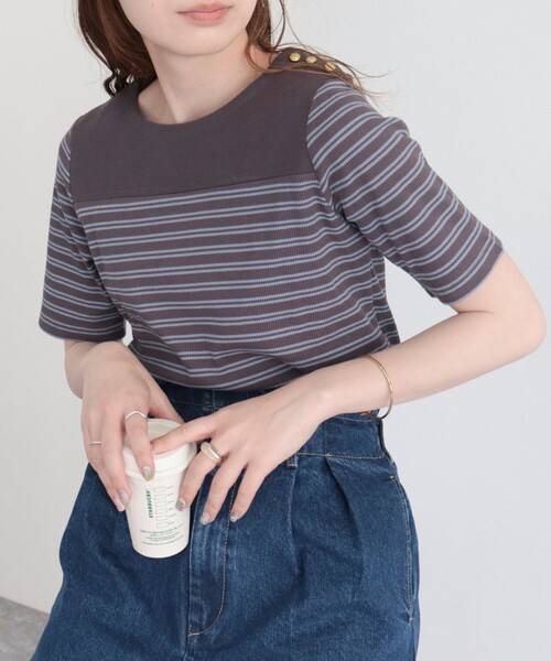 ◇fredy emue◇ 【2023 SS】 コンパクトなシルエットが今年らしいボーダーカットソー ●point ・コンパクトなサイズ感でトレンド感漂うボーダーT ・ストレッチの効いた伸縮性のある素材でタイトながら柔らかく楽な着心地です ・肘上まである袖丈が二の腕をカバーしてくれます ・パネルボーダーのデザインと肩の金ボタンがシンプルなボーダーTとは一味違うお洒落見えが叶うアイテムです ・コーディネートのアクセントにもおすすめ ・ボリュームたっぷりのボトムスと合わせたメリハリのあるコーディネートがおすすめです 透け感:なし 裏地:なし 伸縮性:あり 光沢感:なし 洗濯:手洗い可 ●お取扱い上のご注意● *商品を長くご愛用していただきたいため、アテンションタグがある場合は必ずご確認の上、着用又はお取り扱い下さい。 *店頭及び屋外での撮影画像は、光の当たり具合で色味が違って見える場合があります。商品の色味は、スタジオ撮影の画像をご参照下さい。 *商品画像に関しては出来る限り忠実に表示出来るよう努めておりますが、お客様がご利用のモニターの設定及び特性により、実際の商品と比較し色味に若干の誤差が生じる場合があります。 *画像の商品はサンプルとなりますので実際の商品と仕様、加工、サイズが若干異なる場合がございます。 *製品洗い加工の商品は、多少の歪み、シワなどが見られたり、風合いやサイズ等が1枚1枚異なります。汗や雨等で濡れた時や、摩擦により色落ちし、他の衣料を汚すことがありますので(特に濃色のもの)ご注意ください。 ◇商品のお気に入り登録◇ 【お気に入りに登録 ♡マークをクリック】を是非ご活用ください! 再入荷の通知や、ラスト1点の通知、セールの通知がいち早く届きます。 ◇ブランドのお気に入り登録◇ 新商品や再入荷など、いち早くブランドのお得情報が届きます。