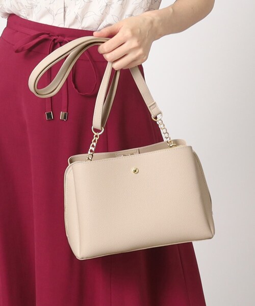 【デザイン】日本女子大学監修の人間工学に基づいて企画した商品です。本体は真ん中がファスナー収納になり大きく口元が開くので使いやすくダブルファスナーになっています。前後はマグネット付きの収納です。ショルダーのチェーン使いがシンプルながらフェミニンです。【機能】底面にカーブを入れることで体に沿いやすくしています。※ポケット数:あおりポケット×2、内側×2店舗へのお問い合わせ商品番号:769-07006●製品寸法:00:高さ16.5cm 幅(上部)29cm 幅(下部)24cm マチ10.5cm ショルダー対応サイズ77~134.5cm備考:重量:約335g(サンプル重量)