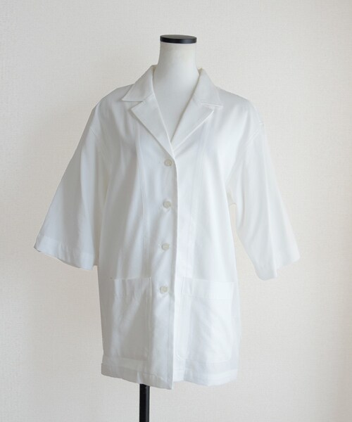 ◆アイテム詳細◆ シャツ感覚でご着用できるオープンカラーハーフシャツJK 深めのネックラインが上品に見え、テーラードジャケットのような雰囲気。前身頃両サイドにはポケットデザインが施してあります。 柔らかくとろみのある素材感。 上質感のある肌馴染みの良いレーヨン・コットン素材を使用しております。 前を開けて羽織りとしても、また閉めてシャツ風に着ても可愛い1枚です。 デニムパンツ、スラックス、スカートさまざまなアイテムと好相性で、その日の気分で幅広い着こなしが可能です。 ───────────────────────────── 【COLOR】ホワイト・ブラック 【SIZE】Fサイズ 平置き(㎝) 着丈71 身幅50 肩幅47 袖丈33 袖口18 裾幅50 【素材】本体 レーヨン 65% 綿 35%