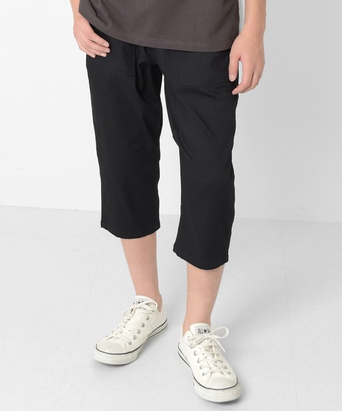 薄手のストレッチ素材を使用した7分丈のパンツです。 夏でも膝を守りながらアクティブに動けるパンツ。 長すぎないクロップド丈で、暑い季節にも重宝します◎ ゆったりとした腰回りから、裾にかけて細くなるテーパードデザインですっきりと綺麗に見えるシルエット。 綿とポリエステルにポリウレタンが混紡された生地は、ストレッチが効いていて動きやすく、乾きも速いので汗をかいても不快にならずサラッとしたはき心地です。 毎日の通学や外遊びにもオススメの1枚。 【ポケット】 フロントポケット×2、ヒップポケット×2 【モデル】 身長154cm、体重40kg 着用サイズ:160cm(クロ、カーキ、ベージュ) 身長150cm、体重37kg 着用サイズ:160cm(クロ) 【お買いものをお楽しみいただく為に】 ▼ブランドのお気に入り登録 新商品や再入荷など、いち早くブランドのお得な情報を受け取ることができます。 ▼商品のお気に入り登録 完売カラーの再入荷通知やラスト1点の通知、セールの通知も受け取ることができます。 是非、この機会にご登録をお願いします。 【返品・交換について】 返品・交換の際は、透明なビニール袋に貼られている"シールタグ"が必要になりますので、破棄せず保管をお願いいたします。 なお、以下に該当する場合は返品・交換をお受けできませんので、商品到着後、必ず着用前に商品をご確認いただきますようお願いいたします。 ・タグ、付属品の紛失、破損・汚損がある場合 ・商品を使用・洗濯した場合(水通しを含む) ・商品に破損、汚損、シワの発生、においの付着があるなど、お届け時と状態が異なる場合