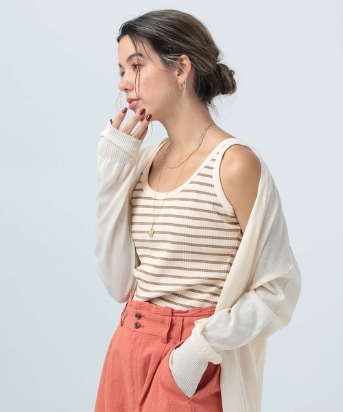 シンプルなデザインで幅広いスタイルに馴染むタンク。 ーーー ★おすすめポイント★ [1]柔らかく着心地の良いフィット感と伸縮性のあるランダムテレコ素材 [2]インナーのバリエーションとして追加したい一枚。 [3]大人に似合う落ち着いたカラーの細めのマルチボーダー3色展開。 ーーー [fabric] 柔らかく着心地の良いフィット感と伸縮性のあるランダムテレコ素材。 [design] インナーのバリエーションとして追加したい一枚。 大人に似合う落ち着いたカラーの細めのマルチボーダー3色展開。 オリジナルのボーダー柄と肩バインダーは無地のフライスを合わせたカジュアルなデザイン。 [styling] シャツやカーディガンのインナーとして活躍するアイテム。ベーシックなコーデにポイント使いして頂くのがおすすめです。 ※屋外での撮影画像は光の加減で実際の商品より明るく見えたり、風合いが異なって見える場合がございます。 商品の色味はスタジオ撮影の画像を参考にして下さい。 ------------------------------------- ≪お買い物をよりお楽しみいただくために≫ ◆商品のお気に入り登録(ハートマークをクリック) 完売カラーの再入荷通知や、完売間近の通知、セールの通知も受けることができます。 ◆ブランドのお気に入り登録 新商品や再入荷など、いち早くブランドのお得な情報を受け取ることができます。 -------------------------------------