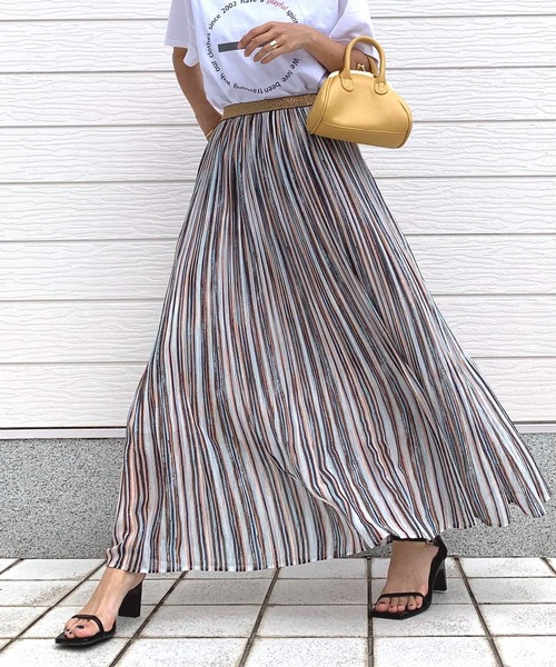カラフルなペイントストライプがアクセントになるプリーツスカートです。 ウエスト部分はゴム仕様で、着心地も楽チン。 ウエストは細かなプリーツ、裾に向かって消えていく加工にしておりマーメイドスカートのような落ち感になっています。 程よいボリューム感が女性らしさを演出し、様々な足元に合う着丈が大人のシルエットに仕上がりました。 コーディネートの主役になる1着です。 《インフォメーション》 ◆商品のお気に入り登録 完売していても再入荷時に再入荷通知を受け取ることができますので、是非ご登録ください。 ◆ブランドのお気に入り登録 新商品や再入荷などの情報を受け取ることができますので、是非ご登録ください。