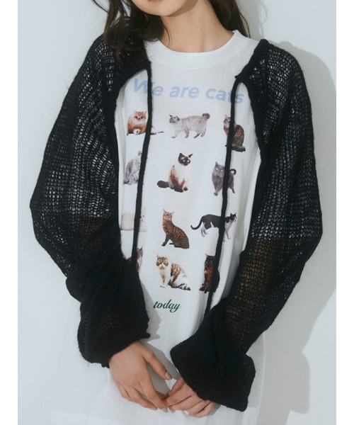 なえなのさん着用♡〇LOOK use item〇 ■デザイン ふわっふわ、やわっやわなモヘアライクな糸を使用したアクセサリー感覚のショートニットボレロ。 body部分がとっても短いので、いろいろなtopsとも合わせやすくレイヤードが楽しいitemです。 まだ暑さの残る時期でもシアー感があるので、さらっと羽織り、秋らしさを取り入れられるitemです。 ■サイズ感 たっぷりの身幅で、ゆるっとヌケ感を出せるサイズ感。 着丈は脇下ほどなので、レイヤードしやすくstyle up効果も抜群です。 ■スタイリング キャミワンピースなど、肌見せが多いものの上から羽織れば大人っぽくも。 ブラウス、ニット、ワンピースなどロングスリーブのitemのレイヤードにも〇 【商品情報】 透け感:有り 裏地:無し 伸縮性:有り 光沢感:無し 生地の厚さ:薄手 このアイテムにおすすめのコーディネートは... デニムスカート/デニムパンツ/キャミワンピース/シアートップス/スウェットパンツ/薄手のニット など