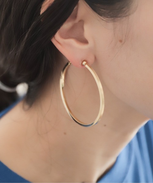 【rapiécage ラピエサージュ】 ・一点でポイントになる大振りイヤリング ・見る角度によって表情の変わる、マット×ツヤ ・洗練感のある細めのフープ <Design> 以前好評頂いていたスリムHOOPピアス・イヤリングがリバイバルで登場。 正面はサティーナというマット加工、サイドと裏面はツヤのメッキを入れて仕上げ、見る角度によって表情が変わるのがポイント。 主張しすぎない細めのフープで取り入れやすく、コーディネートに洗練感をプラスします。 ※商品はrapiécageオリジナルBOXに入れてのお届けになります。
