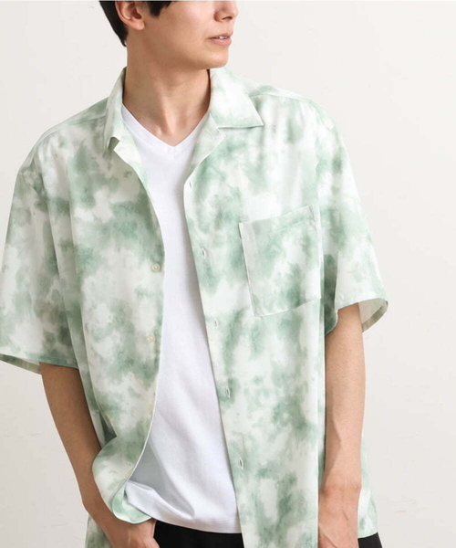 ◆【イージーケア/洗濯機で洗える/接触冷感/速乾/防シワ】今季トレンド! ムラ染め風プリント素材を使用した五分袖オープンカラ―シャツ◆ 【デザイン】 トレンドのムラ染め風プリントを施したオープンカラ―シャツ。 ゆとりのあるワイドシルエットで肘が隠れる程度の五分袖でリラックス感のあるトレンドシャツです。 インパクトがあり羽織るだけで今季らしいスタイリングになるオススメのアイテムです。 【素材】 ムラ染め風プリントを施したポリエステル素材を使用。 シワになりにくく、サラッとした肌触りがポイント。 速乾素材のため洗っても早く乾きやすいのも嬉しいポイントです。 接触冷感機能がついているため夏の暑い時期でも涼しく着用頂けます。 イージーケア、ご自宅で洗濯機洗いができるためデイリーユースに着用できるのも嬉しいポイントです。 【スタイリング】 シャツハオリとしてシンプルに無地カットソーやロゴTとあわせたり、シャツの裾がスクエアカットのため、インナーにはロングシルエットカットソーとの裾レイヤードスタイルでトレンドの着こなしができる汎用性の高いアイテムです。 ボトムはきれい目スタイルであればスラックス合わせ、カジュアルスタイルであればゆとりのあるパンツとあわせるとバランスが良いコーディネートができます。 ---------------- 透け感:なし 裏地:なし 伸縮性:ややあり 光沢感:なし 生地の厚さ:普通 ---------------- ≪お気に入り登録機能の使い方≫ ■商品のお気に入り登録(ハートマークをクリック) 再入荷通知や値下げ等、お得なご案内を受けることができます。 ---------------- ※お使いの液晶環境により、色味が多少異なる場合がございます。予めご了承ください。 ※サンプルにて撮影しておりますため、お届けの商品と仕様が若干異なる場合がございます。予めご了承ください。