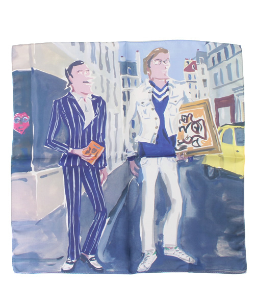 EDIFICE(エディフィス) jean phillipe delhomme 独特のタッチのイラストで数々のセレクトショップや高級ホテルなどでコラボレーションを果たしてきたパリ在住のイラストレーター「jean phillipe delhome」。パリのワンシーンを切り抜いたようなデザインは、首元に軽く巻くだけで、スタイリングを華やかなものにしてくれます。ドレッシーな合わせは勿論のこと、カジュアルなフレンチマリンスタイルのアクセントとしてもお勧めです。