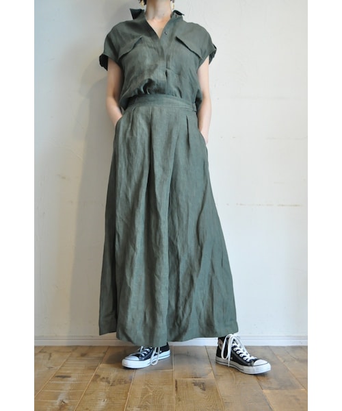 イギリス軍のクラシックなパンツとミリタリーシャツをセットアップしたようなワンピースです。 グルカパンツをスカート型にするなどの絶妙なアレンジでエレガントな雰囲気になっています。 サイドのベルトでサイズ調節可能です。