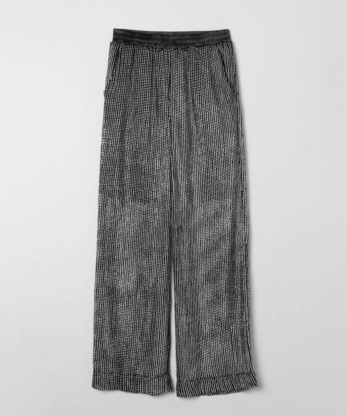 ーーー 繊細なスクエアの透かし柄で清涼感のある生地にハクプリントをのせて、スタイリングの主役になるストレートパンツ ーーー 透かし柄にプリントを施し、ギラギラしすぎずに抜け感とリラックス感のあるデザインパンツです♪ 膝上までついている裏地で、下着のラインも気になりにくい安心仕様に仕上げました。 裏地は程よく足との隙間ができるような着心地の良いサイズ感です。 ウエスト部分はゴムで脱ぎ穿きしやすく、紐が付いているので調節可能なところもうれしいポイント★ 暑い時期にも穿きやすく、歩くと風を纏うような涼しげなアイテムなので、今の時期から長い期間楽しめます。 -INFORMATION- ◆商品のお気に入り登録 完売していても再入荷時に再入荷通知を受け取ることができますので、是非ご登録ください♪ ◆ブランドのお気に入り登録 新商品や再入荷などの情報を受け取ることができますので、是非ご登録ください♪