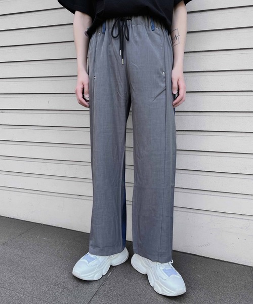 デニムとスラックスパンツをドッキングさせたイージーパンツ。フロントはスラックス、バックは中濃色のデニム。個性的なデザインでシンプルなトップスと合わせるだけでおしゃれな印象に。 仕様:異素材切り替え、ウエストフロントゴム、ドローストリングウエスト、サイド・バックポケット、ベルトループ、デニム、スラックス ※この製品は古着のような質感を出すため特殊な加工を施しており、 色や風合いなど1点ずつ多少違う仕上がりになっております。 ※素材の特性上、摩擦や水分・汗などにより色落ちや色移りする場合がございます。 白や淡色のものとの着用にご注意ください。 ※洗濯の際は、移染する可能性もございますので他のものと分けて洗ってください。 【商品画像について】 ※画像はサンプルです。実際の商品と仕様、加工、サイズ、カラーが若干異なる場合がございます。 また、撮影場所や照明の照射・角度、お使いのモニター環境によりお色味が異なる場合がございます。予めご了承ください。 《お気に入り登録》・「商品のお気に入り登録」で再入荷通知や、ラスト1点の通知、セール通知も受け取ることができます。 ・「ブランドのお気に入り登録」で新商品や再入荷など、いち早くブランドのお得な情報を受け取ることができます。 【Figments/フィグメンツ】 ファッション、音楽、カルチャー。時代とともに変化を楽しむ者たちに向けた、 Realityを覆し、常識を壊すユニセックスファッションブランド。