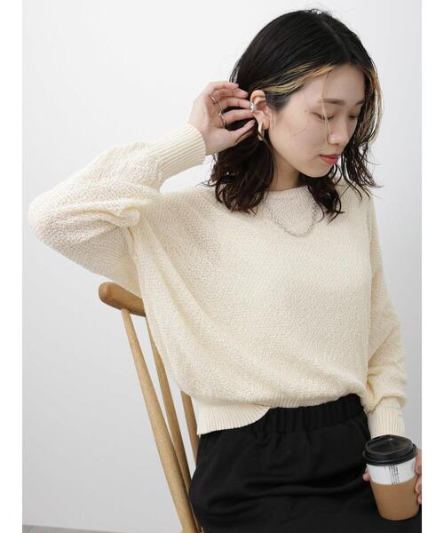 表面感のあるシアーニットで爽やかに仕上げたニットプルオーバー。 ゆったりとしたオーバーシルエットで気負いなくスタイリングでき、華奢な印象に見せてくれるのも嬉しいポイントです。 飽きのこないシンプルなデザインとベーシックなカラーで、カジュアルから綺麗めコーデにと、幅広く活躍してくれるアイテム。 ※商品画像は、撮影環境やお客様のご利用のPC・スマートフォンのモニター環境などにより実物と色味に差異がある場合がございます。