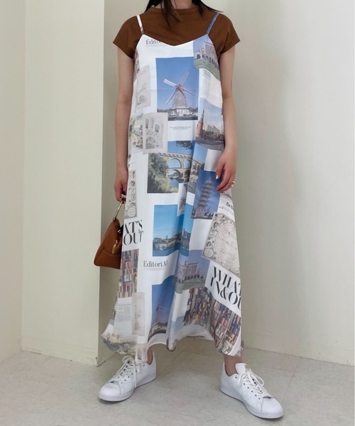 オリジナル風景プリントのワンピース。 上品で控えめな光沢感のあるサテン生地を使用。 さらっとした表面感と柔らかいタッチに薄手の生地で、ストレスフリーな着心地。 薄手ながらも程よく肉厚感もあり、透け感がありますが、裏地付きなので安心して着用いただけます。 落ち感のあるエレガントなフレアシルエットと、華奢な肩紐が女性らしさをプラス。 シーズンレスで使える生地感なので、春はコンパクトトップスとレイヤード、夏はキャミソール合わせ、 肌寒い日にはカーディガンを羽織ったり、上からニットを重ねてスカート風に魅せるコーデも◎ クールな印象のグレーと、大人っぽく仕上がるようなメリハリをつけたカラー配色のミックスの二色展開。 --------------------------------------------------------------------------------------------------------- 【商品特性】 透け感:なし 裏地:あり 伸縮性:あり 光沢感:あり 生地の厚さ:薄手 --------------------------------------------------------------------------------------------------------- ★商品のお気に入り登録 完売していても再入荷時に再入荷通知を受け取ることができますので、是非ご登録ください☆ ★ブランドのお気に入り登録 新商品や再入荷などの情報を受け取ることができますので、是非ご登録ください☆ ※画像の商品は光の反射や角度により、実物と色味が異なる場合がございます。 また、表示のサイズ感と実物は若干異なる場合もございますので、予めご了承ください。 ※着用、お取り扱いの際は、商品についている品質表示とアテンションタグを必ずご確認ください。