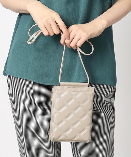 【デザイン】 トレンドのコンパクトサイズのミニショルダーです。 前後の収納はスマホが入れやすいマチ付きになっているので取り出しやすく便利です。 真ん中はファスナー付きの収納でカードも収納できるのでお出かけにピッタリです。 前面にはトレンドのキルティングを施しています。 ※ポケット数:サイドファスナーポケット×1、内側カードポケット×3 店舗へのお問い合わせ商品番号:769-47004 ●製品寸法: 00:高さ18.5cm 幅(上部)13cm 幅(下部)13cm マチ3cm ショルダー全長121.5cm 備考:重量:約130g(サンプル重量)