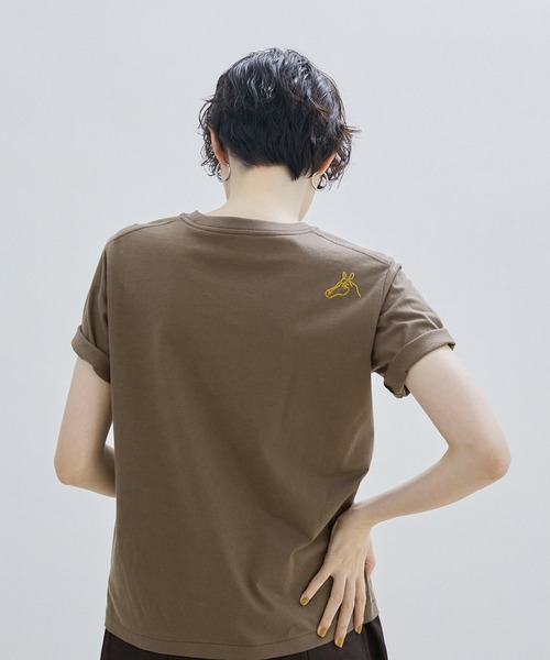 カラーごとに身につけているとラッキーを運んできてくれると言われるモチーフの刺繍を入れたクルーネックTシャツ■デザイン/シルエット 程よいコンパクトなシルエットの刺繍入りのクルーネックTシャツ。 カラーごとに、身につけているとラッキーを運んできてくれると言われるモチーフ、フランス人女性の名前の刺繍が入っています。 きれい目なコットンと、クラフト感のミックスで古着が苦手な方でもヴィンテージ感を楽しんで頂ける、遊び心のある大人のTシャツです。 その日の気分や願いに合わせてモチーフ違いのカラーを選んで。 ■各モチーフについて ホワイト:Francoise、フランソワーズ フランス語圏の女性の名前、フランソワーズから。 フランス出身のスタイルミューズとして60年代~現在まで活躍する女性の名前から引用、イメージしています。 なりたい女性像に向かって1日を過ごせるよう、背中を押してくれる一枚。 ベージュ:ハート、クローバー 四つ葉のクローバーは「幸運」を意味するといわれています。 自然界では希少価値が高いことから、見つけると幸福が訪れると捉えられている、定番のモチーフです。 カーキ:ホースシュー ホースシューはその名の通り馬の蹄を保護する金具“蹄鉄(ていてつ)”。 ヨーロッパでは古くからポピュラーなお守りです。 U字型の形状から幸せを受け止め、溜め込むといわれ、幸運をもたらす縁起物として知られています。 ■素材 天然の油脂を多く含み、滑らかな肌触りのインド超長綿です。 オーガニックコットン100%も嬉しいポイントです。 ■コーディネート ツイードのジレ(商品番号:SHJ33280)とデニムと合わせるのがオススメです。 シアーなカーディガンと合わせたり、キャミワンピースやジャンパースカートのインナーにも活躍します。 ジャケットにインして遊び心のあるスタイリングも◎ ■モデル身長:172cm 着用サイズ:F(ロングヘアモデル) ■モデル身長:170cm 着用サイズ:F(ショートヘアモデル) ----------------------------- 裏地:なし 光沢感:なし 透け感:ホワイトのみややあり 伸縮性:ややあり 生地の厚さ:普通 -----------------------------