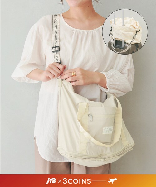 ●下部のファスナーを広げるともう1段階サイズが大きくなり、旅行帰りに荷物が増えても安心!●1、2泊の着替えや旅行用品が入れられる、大容量の収納スペース。●収納スペースのボタンを外すと仕切りができ、バッグの中身の整理整頓に役立ちます。●肩掛けでも手持ちでも使える2WAY仕様で、さらに太めの紐なので腕や肩が痛くなりにくい◎●前面のポケット部分がループになっており、スーツケースに取り付けることが可能です。●コンパクトに折りたためるので持ち運びに便利!●濡れや汚れに強いはっ水生地を使用しています。■仕様■サイズ:<バッグ>約縦通常30~最大40×横45×マチ19.5cm <ベルト>最長約120cm耐荷重:約8kg《ご使用上の注意》●キャリーケースの上に乗せる際は、バッグの中身が偏らないように注意してご使用ください。 ●汗・雨など湿った状態や摩擦により 色移りする場合がありますので注意してください。プリント部分はご使用を繰り返すことで色が薄くなったり剥がれることがあります。●洗濯・タンブル乾燥・アイロン掛け・クリーニングはできません。 ●破損の原因になりますので、無理な詰め込みや、極めて重いものは入れないでください。 ●パーツで指などを挟まないようご注意ください。●中に入れたものの紛失・破損や万が一の事故などについては責任を負いかねますので予めご了承ください。 ●火気の近くや高温多湿の場所に置いたり保管しないでください。【others/category】[travel]【fashion】[bag]