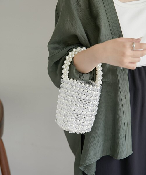 ★アクセサリー感覚で身に着けたい!パールをふんだんに使ったミニハンドバッグ●デイリー使いは勿論、パーティーシーンや結婚式などの特別な日にもピッタリなアイテム●バスケット型の見た目が大人可愛い雰囲気を演出●ボディー部分はビーズとパールで作っているので、異素材合わせこなれ感を醸し出します。●スマホとハンカチやリップが入るくらいの大きさなので、コーデのアクセントとしてアクセサリーのように使用していただくのが◎●上品なパール使いが普段のスタイリングも上品に仕上げてくれるバッグです。【MATERIAL】アクリル#パールバッグ#ミニバッグ#オケージョン