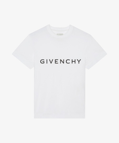 コットン ショートスリーブTシャツ。アーキタイプライン。ラウンドカラー。フロントにGIVENCHY PARISロゴのプリント。バック下方にスモール4Gエンブレムプリント。スリムカット