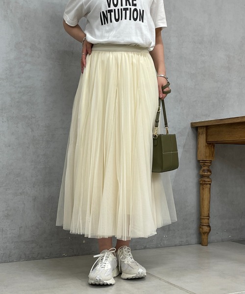 ドラマティックに広がる大人の甘さ漂うチュールスカート 商品ポイント ・チュールを2枚重ねたエアリー感のあるフレアスカート ・広がりすぎないシルエットと長めのレングスで甘くなりすぎず、大人フェミニンになアイテム ・ウエストはオールゴムでストレスフリーに◎ おすすめコーディネート コンパクトなトップスからオーバーサイズのサマーニットまで取り入れやすい! Tシャツやブラウスなど様々なコーデにシーズンレスで活用できます。 足元はパンプスやサンダルでレディライクな雰囲気に、スニーカーで少しスポーティな印象に◎ 素材 表地:ポリエステル100% 裏地:ポリエステル100% 洗濯方法:洗濯機洗い【弱】 透け感:あり 裏地:あり 伸縮性:あり 生地の厚さ:薄手 光沢:あり ポケット:なし 【スタッフ着用コメント】 《RINO》 身長:148cm/着用サイズ:F 体型:普通/骨格:ストレート/パーソナルカラー :ブルベ冬 軽くてウエストのあたりもゴムなので、ストレスフリーに着用できます♡ 1枚でお上品な雰囲気になります。 《YUI》 身長:149cm/着用サイズ:F 体型:ぽっちゃり/骨格:ウェーブ/パーソナルカラー :イエベ春 ふんわりボリュームがあるのでインスタイルで着たいスカートです。着丈は短いので低身長さんでも着やすいです。 《ゆうき》 身長:152cm/着用サイズ:F 体型:ぽっちゃり/骨格:ストレート/パーソナルカラー :イエベ春 骨ストなのでベスト合わせで広がりを抑えながら着ています! 揺れ感が女性らしいのでとってもきれいに着こなせます! 骨格タイプ ストレート:全体的に立体型で筋肉質。ひざ下はすらっと細め。ボディラインにメリハリがある。 ウェーブ:上半身が薄く、華奢。緩やかな曲線のボディライン。下半身に重心があり女性らしい体型。 ナチュラル:筋肉や脂肪があまり感じられない体型。腰の位置が高く骨や関節が目立ちやすい。 ============================ 【注意点】 ※画像の商品は光の照射や角度、お使いのモニター環境により、 実物と色味が異なる場合がございます。 あらかじめご了承下さいませ。 ============================ 【お買い物をもっと便利に楽しく♪】 『♡』をクリックでお気に入り登録 ・「商品のお気に入り登録」で・・・ ラスト1点や再入荷の通知が届きます。 登録して頂いた商品だけが対象となる、あなただけのタイムセールが開催されることも! ・「ブランドのお気に入り登録」で・・・ 新商品や再入荷など、いち早くブランドのお得な情報を受け取ることができますので、ご登録をおすすめします! ============================