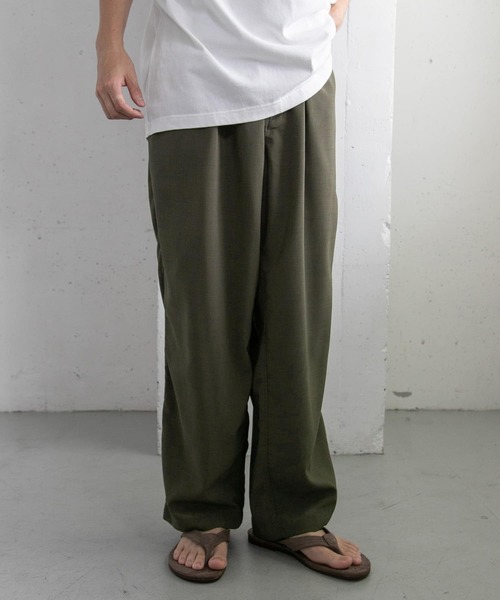 シンプルながらも機能性に優れ、且つ清涼感溢れるパンツをご用意しました。 まるで麻の様なドライなタッチと、軽さを併せ持った〈TEC. LINEN〉素材を使用し、通気性が非常に優れているため、真夏の暑い時期でも蒸れずらく着られます。 また速乾機能も兼ね備えているためイージーケアにも富んだ嬉しい一着が完成。 ワイドながらも生地の落ち感を活かし、またタックを入れることで程よくすっきりと魅せてくれます。 定番で飽きの来ないカラーリングで展開することで、同素材のシャツと合わせても大人カジュアルな雰囲気で着こなせます。 《セットアップアイテム》 DF35-13V106 FORK&SPOON Tec Linen Short-Sleeve Shirts 【FORK&SPOON(フォークアンドスプーン)】 DOORSのプライベートレーベル。その名前のとおり「毎日食事を摂るように、毎日大切に着てほしい」という思いが込められています。毎日着たくなる様な心地のよいベーシックスタイルは、世代を超えてお楽しみいただけます。 【2023 Spring/Summer】 ※商品画像は、光の当たり具合やパソコンなどの閲覧環境により、実際の色味と異なって見える場合がございます。予めご了承ください。 ※商品の色味の目安は、商品単体の画像をご参照ください。 ▼お気に入り登録のおすすめ▼ お気に入り登録商品は、マイページにて現在の価格情報や在庫状況の確認が可能です。 お買い物リストの管理に是非ご利用下さい。素材感 透け感:なし 伸縮性:なし 裏地:なし 光沢:なし ポケット:あり 54