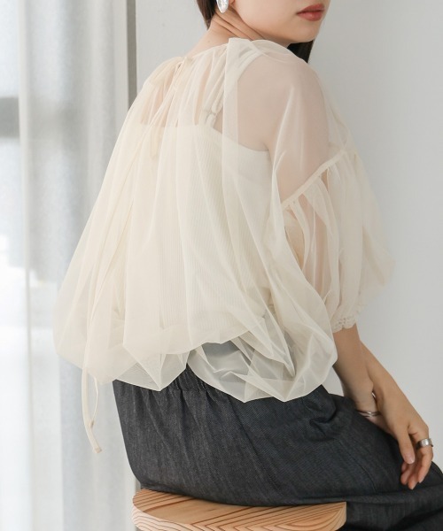 ●Bab●■POINT今年大注目のチュールシアートップスが登場!目を惹くボリュームスリーブとふんだんに入ったギャザーで、ふわっとしたエアリー感ある1枚に。バックスタイルまでぬかりなく、大人可愛いを演出する着映えブラウスになっています。■FABRIC柔らかいソフトチュールを使用しているのでチクチクせず、繊細で高級感があります。ふんわりしたギャザーでシルエットを楽しめる一枚です。ご自宅でのホームケアも可能です。■COORDINATEブラウスと合わせた柔らかい素材のカーゴパンツにコーディネートしてリラックススタイルに。デニムのロングスカートに合わせれば、一気にレディライクな仕上がりになります。インしてももたつかず、すっきりと着こなして頂けます。…………………透け感:あり裏地:なし…………………※撮影環境により、多少実際のカラーと異なる場合がございます。また、携帯やスマートフォン、パソコンなどの画面上と実物では多少色が異なって見える場合がございます。ご了承下さいませ。※画像の商品はサンプルのため、実際の商品と若干仕様が異なる場合がございます。※濃色品は、過度な摩擦や濡れた状態での摩擦により、色落ち・色移りをする恐れがあります。※この商品は、素材の特性上、洗濯の際に多少の縮みが生じる恐れがあります。洗濯後は形を整えてから干してください。※その他お取り扱いに関しましては、商品に付属のアテンションタグをご覧ください。★商品のお気に入り登録再入荷やラスト1点のお知らせ、セール情報などお知らせを受け取ることができます!★ブランドのお気に入り登録新商品や再入荷などのお得な情報を受け取ることができますので、是非ご登録ください。★Bab公式Instagramアカウント【bab.showroom】で最新情報をチェック!