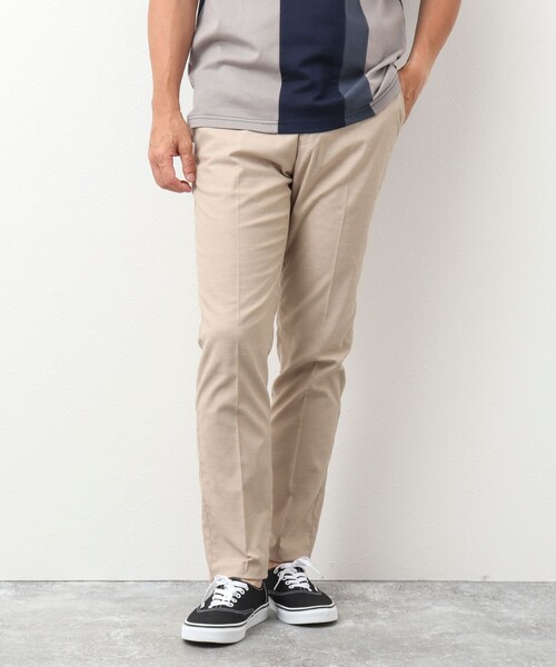 風合いのある素材感とドライタッチな肌触りスタイリッシュに決まるON/OFF兼用パンツ◆素材・綿×麻×ポリエステルでさらっとした肌触り・天然素材のようなポリエステルに天然素材をミックス◆デザイン・裾にかけて細くなるテーパードシルエット・ジャケットとの相性も抜群のスリムシルエット◆スタイリング・ON/OFF兼用のキレイめコーディネートに・盛夏シーズンのビジネスシーンに・ビジカジスタイルにおすすめ※この製品は縫製後、水洗いをしています。そのため多少の歪み、シワなどが見られたり、風合いやサイズ等が1枚1枚異なります。汗や雨等で濡れた時や、摩擦により色落ちし、他の衣料を汚すことがありますので(特に濃色のもの)ご注意ください。★気になるアイテムは【お気に入り登録】がオススメです!入荷情報やクーポン、セール情報が通知されるようになります。【お取扱い上のご注意】末永くご愛用頂くために、アテンションタグを必ずご確認の上、着用又はお取り扱い下さい。※店頭及び屋外での撮影画像は、光の当たり具合で色味が違って見える場合があります。商品の色味は、スタジオ撮影の画像をご参照下さい。※商品画像に関しては出来る限り忠実に表示出来るよう努めておりますが、お客様がご利用のモニターの設定及び特性により、実際の商品と比較し色味に若干の誤差が生じる場合があります。※画像の商品はサンプルとなりますので実際の商品と仕様、加工、サイズが若干異なる場合がございます。※製品洗い加工の商品は、多少の歪み、シワなどが見られたり、風合いやサイズ等が1枚1枚異なります。汗や雨等で濡れた時や、摩擦により色落ちし、他の衣料を汚すことがありますので(特に濃色のもの)ご注意ください。
