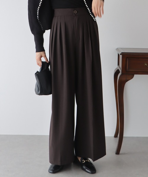 シーズンレスで着用できるタックスラックス◦POINT大人のきれいめスタイルに1本は持っておきたい、美脚見えスラックス。ワイドシルエットでルーズ感がありますが、センタープレス入りなのできれい見えも叶う1本です。たっぷりとタックを施しているのでワイドシルエットでもウエストはすっきりと見せてくれてウエストの後ろがゴムなのでリラックスして履いていただけます。季節を問わずサラッと履けるアイテムです。1年中着まわせて、きれいめにもカジュアルにもいろんなシーンで活躍するアイテムです。◦STYLINGシャツブラウスやヒールサンダルと合わせてきれいめなアイテムともよく合いますがスウェットやTシャツにスニーカーを合わせた大人カジュアルコーデを楽しむのもおすすめです。韓国っぽいストリートカジュアルからオフィスカジュアルまで幅広く使えるアイテム。1年中着られる素材なので秋冬はニットやジャケットを着ても◎◦DETAILタック入りバックウエストゴムハイウエスト両サイドポケット有り後ろはフェイクポケット◦FABRIC1年中着られるさらっとしたポリエステル素材[ コーディネート ]パールボタンシャツブラウス 73625948(ZOZO)512311-5616(店舗)パール付きスタンドカラーブラウス 69067972(ZOZO)542221-4763(店舗)リボンタイ ボリュームスリーブシャツ 62542544(ZOZO)542121-2813(店舗)パールデザインニットカーディガン 71971022(ZOZO)542223-4828(店舗)バックストラップパンプス 74164119(ZOZO)542319-5782(店舗)スクエアトゥ やわらかフェイクレザービット付きローファー 53963410(ZOZO)542029-9745(店舗)[ 商品のお気に入り登録 ]完売カラーの再入荷通知や、値下げのお知らせ、ラスト1点の通知などが受け取ることができます。随時再入荷していますので、お気に入り登録して頂くと再入荷情報がGET出来ます。[ ブランドのお気に入り登録 ]新商品の発売や再入荷、タイムセールやクーポン発行のお知らせなどBLUEEASTのお得な情報を受け取ることができます。ぜひご登録ください♪※撮影環境により、モデル着用画像は実際の商品と色味が異なって見える場合がございます。また、PCやスマートフォンの環境により画面上と実物では多少色が異なって見える場合がございます。トルソー画像が実際の商品に一番近いお色となりますのでご確認ください。