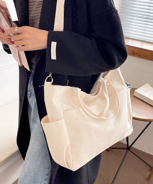 【3WAY/斜めがけ】【ユニセックス】【使いやすいアウトポケットを装備!】大人気、カジュアルプレーンなキャンバストートバッグ/ショルダーバッグ。ラフな印象のキャンバスに、使いやすさ抜群のアウトポケットを装備したデイリートート。深めのオープンポケットなので、iPhoneや500mlペットボトルなどをサッと入れられて便利です♪メンズ・レディース問わないユニセックス仕様。着脱式&長さ調節可能なショルダー紐がセットで付いているので、3way仕様でお使いいただけます。1way-ハンドバッグ2way-肩掛けトートバッグ3way-斜め掛けショルダーバッグA4資料やiPadなどもしっかり入る大容量◎ファスナー付の開口口は荷物が飛び出さず、外から荷物が見えず安心!バッグ自体がとっても軽いのも嬉しいpoint。きれいめコーデにもマッチする大人かわいいアイテムに仕上げました。[仕様]・外側前面~側面:縦長フリーポケット4カ所・メイン口:ファスナー開閉・内側:深め小物ポケット2カ所・底面:ソフトな底敷き入り・付属品:着脱式&長さ調節可能なショルダー紐[サイズ/重さ]高さ28cm/下横幅31cm/上横幅37cm/奥行(底マチ)10cm/持ち手高さ14cm/肩紐長さ最長102cm330g[素材]キャンバスおすすめのシーン通勤 オフィス 通学 デート ディナー ビーチ サブバッグ、ピクニック、旅行など幅広くお使いいただけます。クリスマスやお誕生日などのプレゼントやギフトなどにも最適な仕上がりです。▼ブランド 【florge】 -フロージュ-「着る人の心や体を癒し包む服、何気ない日常をちょっとだけ特別な日に変えられるアクセサリー」をテーマに、おしゃれでかわいい商品からおとなめオフィスに使える商品までトレンドの人気アイテムをご提案するレディースブランドです。プチプラ商品を多く取り扱っているのも嬉しいポイント♪画像付近のブランド名からぜひご覧ください。【インフォメーション】▼商品のお気に入り登録 (カートの右のハートをクリック)完売カラーの再入荷通知を受け取ることができます。▼ブランドのお気に入り登録(上部のブランド名をクリック)新商品や再入荷の通知を受け取ることができます。