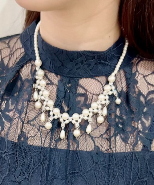 ***結婚式・二次会・謝恩会・成人式・パーティー等のフォーマルシーンにオススメ*** 首元を華やかに彩るボリューミーなパール調ネックレスです。 ランダムパールに涙雫パールで、華やかをUP♪