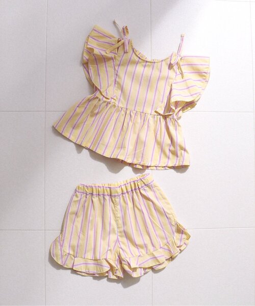 *◎アプレのセットアップ◎*「WEB限定 マルチストライプ・チェック柄セットアップ」はこれだけでコーデがきまる万能アイテム!セットアップとしてはもちろん!!トップス、ボトムスを別のアイテムとあわせて色んなコーディネートも楽しめる♪大きめのフリルデザインと肩のリボンがキュート!ストライプ柄とチェック柄の2種類展開☆【取り扱い表示】40℃を上限に洗濯機で洗濯、デリケートアイテムモード、ネット使用、漂白剤を使用禁止、色物は同系の色と一緒に、洗濯後直ちに取出し、タンブル乾燥不可、日陰で吊り干し、低温でアイロン、商業ドライクリーニング不可※商品により多少の誤差が生じる事がございます。あらかじめご了承下さい。※ご使用のパソコンやブラウザの環境により、実際の色とは多少異なる場合がございます。※モデル着用写真についてはイメージの為、実際の商品とカラーや仕様が異なる場合がございますので、商品画像をご覧ください。【 apres les cours -アプレレクール- 】「キオク いろどる、こどもふく。」大切なキオクを彩る、お気に入りの一枚。「アプレ レ クール」は独自の色づかいやテキスタイルで日々をトクベツに過ごせるそんな「一枚」をお届けします。