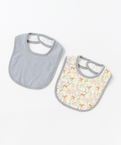 洗い替えに便利なスタイ2Pセットです。 無地と総柄の組み合わせで、スタイリングに合わせてデザインを選べるのが魅力。吸水性が高くやわらかな肌触りのガーゼ生地と裏パイルなので、ベビーにもやさしく寄り添います。着脱はスナップボタンタイプです。