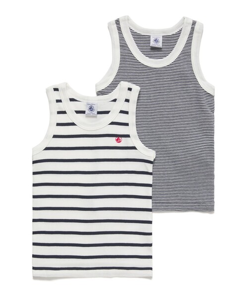 ブランドを代表するミラレボーダーとマリニエールボーダーで揃えたタンクトップ2枚セットです。胸にあしらわれたワンポイントのブランドロゴが、シンプルなデザインのアクセントとして印象的。環境にやさしいオーガニックコットンを使用した、ギフトにもおすすめのアイテムです。