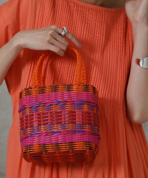 華やかなカラーリングが夏にぴったりなかごバッグ ・コンパクトなミニサイズながら大きめのマチで収納力抜群 ・500mlボトル収納可能 ・ベージュ/オレンジの2色展開 【スタッフレビュー】 シンプルなコーディネートに映える、細かい柄編みがアクセントのかごバッグ。 柔軟性のあるしなやかな樹脂仕立てで安定感があり、デイリーはもちろん、雨の日にも使いやすいアイテムです。 【取扱注意事項】 モデルの着用画像の場合、光の当たり具合により、実際の色味と異なって見えることがございます。色味は、商品生地の画像をご参照ください。 【メーカー品番:53233-2-02416】