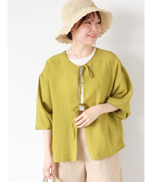 連ねたリボンがアクセントになったブラウス。前後どちらでも着用が楽しめる2WAY仕様で、スタイリングの幅も広がります。袖口ギャザーのボリューム袖も愛らしさを演出。独特なシワ感のある素材使いで、爽やかな風合いに仕上げました。 ※商品画像は、撮影環境やお客様のご利用のPC・スマートフォンのモニター環境などにより実物と色味に差異がある場合がございます。