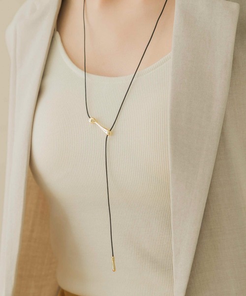 【人気のY字シルエット】華奢なコードにニュアンスの効いたメタルモチーフを施したネックレス。モチーフに通したコードをスライドすればお好みの長さでの着用が可能◎大人ライクな落ち着きのある1点です。※メッキ製品は変色してしまいがちです。こまめなお手入れで防止してください。アレルギー体質の方や体調が低下している方など、かぶれることがありますので十分にご注意ください。※アクセサリーは壊れやすいものです。取扱いにご注意ください。※その他お取り扱いに関しましては、商品に付属のアテンションタグをご覧ください。※商品画像は、光の当たり具合やパソコンなどの閲覧環境により、実際の色味と異なって見える場合がございます。予めご了承ください。※商品の色味の目安は、商品単体の画像をご参照ください。▼お気に入り登録のおすすめ▼お気に入り登録商品は、マイページにて現在の価格情報や在庫状況の確認が可能です。 お買い物リストの管理に是非ご利用下さい。
