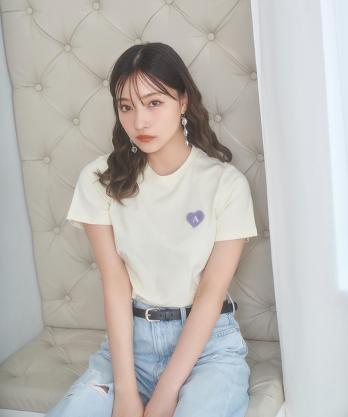 左胸のハートがポイントのレディースTシャツ、体にフィットするコンパクトサイズが様々なボトムに合わせやすく、 シャツのインナーでも最適な1枚です。