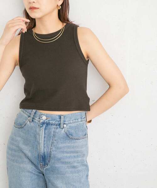 【ヘビロテ確実!アメスリ&クロップド丈が今年らしいワッフルタンクトップ】ミニワッフル素材のクロップドタンクトップ。アメリカンスリーブのような肩幅でトレンドを意識しました。シャツやワンピースのインナーとして取り入れることでヘルシーな肌見せスタイルが楽しめるアイテムです。【2023 Spring/Summer】※この商品は、洗濯により斜行(ねじれ)が生じます。洗濯後はタテ、ヨコに引っ張り形を整えてから干してください。※商品画像は、光の当たり具合やパソコンなどの閲覧環境により、実際の色味と異なって見える場合がございます。予めご了承ください。※商品の色味の目安は、商品単体の画像をご参照ください。▼お気に入り登録のおすすめ▼お気に入り登録商品は、マイページにて現在の価格情報や在庫状況の確認が可能です。お買い物リストの管理に是非ご利用下さい。素材感透け感 : ややあり(OFFのみ)伸縮性 : あり裏地 : なし光沢 : なしポケット : なし