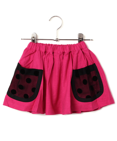 15年SS新作スカートの入荷です。鮮やかな色目が目を引くフレアギャザーのシルエット。 両脇のビッグポケットはフロッキードットのチュールで、周囲をパイピング。 ウエストイージーで裏地付きで透け感なし。