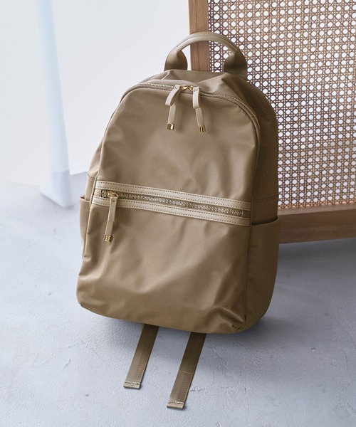 ON・OFF兼用で使えるきれいめリュック【デザイン・シルエット】微光沢があり、きれいめなナイロン調の素材を使用したリュックです。<POINT>・部分的にフェイクレザーやゴールド金具を使うことで上品で高級感のある仕上がりです。・スーツスタイルにも休日のお出かけスタイルにもおすすめ。・背胴の内ポケットは13インチのノートパソコンが直接収納できるようにクッション材が入ったポケットになっています。・背胴外ポケットは内側に貫通していませんが、長財布が収納できるのでセキュリティー面も使いやすさも◎・内側についた紐の先にナスカンが付いているので、すぐに取り出したい鍵などをつけていただくのに便利です。※こちらは、以前展開していた品番:BVX13150と同型です。【カラー】使い勝手の良いブラック・ベージュ・グレー3色展開。-----------------------------ポケットの数:内×5、外×4A4収納:可能長財布収納:可能-----------------------------※画像の商品はサンプルです。 実際の商品と仕様、加工、サイズが若干異なる場合がございます。