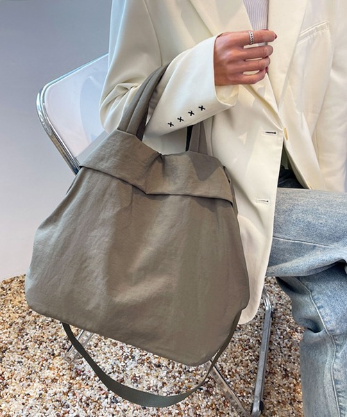【3WAY/斜めがけ】【軽量】【くったりフォルムがかわいい♪ナイロンバッグ】大人気、折り返しデザインがオシャレなシンプルハンドバッグ/ショルダーバッグ。ツヤのあるナイロン生地を採用し、程よい輝きを纏う大人シックなバッグに。シンプルな見た目なので、通勤バッグ、エコバッグ、サブバッグなど幅広いシーンで活躍間違いなし♪着脱式&長さ調節可能なショルダー紐付きで、3way仕様でお使いいただけます。1way-手持ちハンドバッグ2way-肩掛けトートバッグ3way-斜め掛けショルダーバッグ500mlペットボトルやiPadなどもしっかり入る大容量◎普段使いにちょうどよい、大きすぎず小さすぎない絶妙なサイズ感がpointです。メイン収納を2つに分けるファスナーポケットが付いているので、荷物をざっくり分けて収納可能。きれいめコーデやカジュアルスタイルにも万能フィットする優秀アイテムに仕上げました。[仕様]・メイン口:スナップフック留め・内側:縦長フリーポケット2カ所、ファスナー大ポケット1カ所・ソフトな底敷き入り・付属品:着脱式&長さ調節可能なショルダー紐[サイズ/重さ]高さ32cm/横幅35cm/奥行(底マチ)18cm/持ち手高さ12cm/肩紐長さ最長105cm300g[素材]ナイロン/合金おすすめのシーン通勤 オフィス 通学 デート ディナー ビーチ サブバッグ、ピクニック、旅行など幅広くお使いいただけます。クリスマスやお誕生日などのプレゼントやギフトなどにも最適な仕上がりです。▼ブランド 【florge】 -フロージュ-「着る人の心や体を癒し包む服、何気ない日常をちょっとだけ特別な日に変えられるアクセサリー」をテーマに、おしゃれでかわいい商品からおとなめオフィスに使える商品までトレンドの人気アイテムをご提案するレディースブランドです。プチプラ商品を多く取り扱っているのも嬉しいポイント♪画像付近のブランド名からぜひご覧ください。【インフォメーション】▼商品のお気に入り登録 (カートの右のハートをクリック)完売カラーの再入荷通知を受け取ることができます。▼ブランドのお気に入り登録(上部のブランド名をクリック)新商品や再入荷の通知を受け取ることができます。