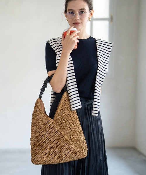 2023年新作!印象に残る、デイリートート シンプルだけど、どこか印象に残る。シンプルだけど、おしゃれに見える。そのひみつは、新鮮なトライアングルシルエットのおかげ。ひとつ持つだけで、コーデにアクセントを与えます。 ギャザーハンドルは肩にひっかけやすくなっています。ハンドルからバッグにかけて身体によく寄り添うので、肩掛けに大変適しています。バッグは肩掛けが好きな方にとてもおすすめ。 カラーも使いやすいベーシックな4色を揃えました。春夏の毎日を一緒に過ごすのにぴったりなかわいいトートバッグです。 \お客様の声/ ご購入いただいたお客さまからは「肩周りにフィットする形なので 留め具がなくても気にならず、中の物も取り出しやすい」「あまりない形でオシャレ」「肩にも掛けやすい」等のお声をいただいています。 【こんな感じで入ります】 口の部分の留め具等はないオープン仕様です。長財布にスマホ、その他小物などがしっかり収まります。中にはファスナーポケット×1、オープンポケット×1がついています。 【素材】 本体部分はペーパー素材を手編みしました。きれいな網目がナチュラルかつ上品です。黒のギャザーハンドルが全体を引き締めます。内装は同系色のポリエステル生地を張り込みました。しっかり荷物を包み込みます。 【カラー】 ブラック、グレー、ナチュラルキャメル、ナチュラルベージュ ・開口部仕様:オープン仕様 ・内装ポケット:オープンポケット1つ、ファスナー付きポケット1つ ・A4ファイルの可否:OKですが、上部が少し見えます。 【「お気に入り」がおすすめ!】 気になる商品はお気に入り登録を! ♡マークをクリックでOK ・ラスト一点、再入荷、セールなどをご案内いたします 【ご購入前に必ずお読みください】 ■汗ばんでいるときなど衣服が濡れているとき、白い服とバッグがこすれると、色がうつる可能性がございます。 ■革製品(合革)に「アルコール除菌剤」がかかることで、シミや色抜けが起こりますので、充分にご注意ください。 ■商品画像について、ご覧頂く際の環境やお使いのパソコン環境及び携帯電話の動作環境などにより、商品画像の色が実際の商品と若干異なる場合がございます。 ■梱包箱について、配送中におこるダンボールのヘコミや汚れ・キズ等はご返品理由の対象外とさせていただきます。 【HAYNI ヘイニ Brand Philosophy】 忙しい女性へおくる、飽きのこないベーシック HAYNI(ヘイニ)は2015年にスタートした、日本を拠点とするバッグブランドです。 日々忙しく過ごす女性が、バッグを選ぶ瞬間にイメージどおりのお気に入りがある、という小さな幸せの″瞬間″をお届けしたいと思っています。 ほどよくトレンドをキャッチしつつも、シンプルでベーシックに使えるアイテムを中心に、使い込むほどに革の経年変化を楽しめる本革バッグも多数ご用意しております。 カジュアルさとフォーマルのバランス感覚を大切に、様々なスタイリングと相性良くコーディネートできることを意識しています。 より上質なファッションをもっと気軽に楽しみたい。そんな女性の為に、ONもOFFも活躍できるバッグを取り揃えています。