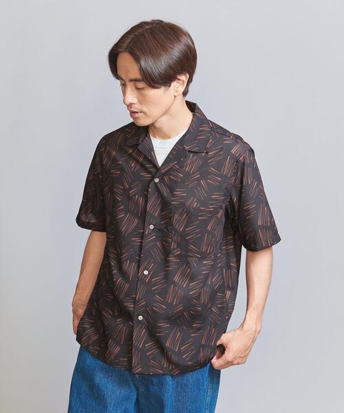 ユニークな火花柄が着こなしのアクセントに。 夏のおでかけやご旅行にぴったりな、開放感のあるオープンカラー半袖シャツ。 ■デザイン 夏らしい火花柄が目を惹くオープンカラーの半袖シャツ。 総柄ながらも、落ち着いたカラーリングのため、大人っぽいシックな印象。 今っぽい雰囲気で着こなしやすい、ややドロップさせたショルダー、身頃にゆとりを持たせたボクシーなシルエットです。 ラフな抜け感がありつつも、品よくクリーンな雰囲気で着用いただけます。 ■素材 ハリ感のあるポリエステル100%の生地を使用。 さっぱりとした風合いで夏場でもさらっと快適に着用頂けます。 こちらの商品はご自宅での手洗いが可能です。 ■コーディネート 一枚着のほか、Tシャツの上に羽織りものとしてもお使いいただける、使い勝手の良いおすすめの夏服。 シンプルになりがちな夏コーデにプラスすると、柄がアクセントとなり着こなし変化がうまれ、鮮度感をもたらしてくれます。 開放感ある佇まいは、デイリーカジュアル使いはもちろん、夏のおでかけやご旅行、リゾートシーンにもぴったりです。 #夏服,#メンズコーデ,#トレンド,#スタンダード,#ベーシック,#グルカサンダル,#ニューバランス,#バケットハット,#ビルケンシュトック ============================ 裏地:なし 透け感:OFF WHITEのみややあり 伸縮:なし 光沢感:なし ============================ 【注意事項】 ※商品を使用前に、タグ等に記載されている「取り扱い上の注意書き」、「洗濯表示」を必ずご確認ください。 ※商品画像は、光の当たり具合やパソコンなどの閲覧環境により、実際の色味と異なって見える場合がございます。あらかじめご了承ください。 ※商品の色味の目安は、商品単体の画像をご参照ください。 店舗へお問い合わせの際は、全国のBEAUTY & YOUTH各店舗まで下記の品名/品番をお申し付けください。 品名:SC HIBANA PTN OPN-RR 品番:12166993002