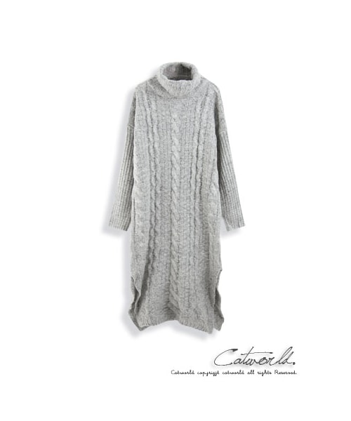 高領長版洋裝沒有多餘的裝飾,只有厚實毛線交織成麻花,長版修飾身型,一件就可以輕鬆出門