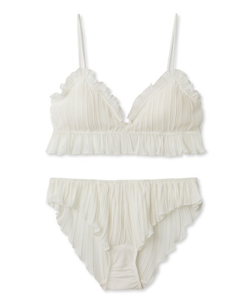【たっぷりフリルに胸ときめくプリーツシフォンのブラ&ショーツ】 【Design/Styling】 アイリスのひらひらした繊細な花弁からインスピレーションを受けた、プリーツシフォンのインナーシリーズです。パッド入りブラとショーツのセットは、自分へのごほうびにもおすすめ。ブラパッドは取り外し可能で、程よくあしらったフリルが女心をくすぐります。アンダー調節が3段階で可能なフックアイ付きです。フレアショーツは脚口に締め付け感がないストレスフリーな履き心地で、ヒップに花弁を添えたような繊細なデザインに仕上げました。色はオフホワイトとピンクの2色展開です。 ※照明の関係により、実際よりも色味が違って見える場合があります。 またパソコン・スマートフォンなどの環境により、若干製品と画像のカラーが異なる場合もございます。予めご了承ください。 商品の色味は、商品単品画像をご参照下さい。 ※商品画像はサンプルのため、色味やサイズ等の仕様に変更がある場合がございますので、予めご了承ください。