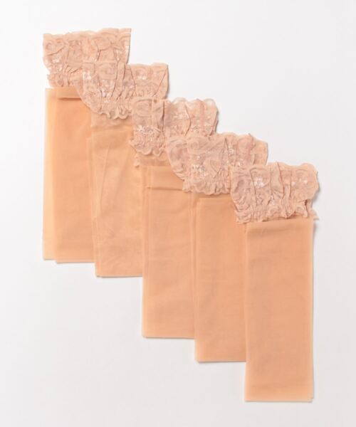 5枚セット レース付き ストッキング透ける素肌がセクシーな足元を演出してくれる、ナチュラルなストッキング着脱のしやすいニーハイ丈で、ガーダーベルトなどの小物アレンジも楽しめる遊び心のある一足です。履き口にあしらったレースには滑り止めを施し、気になるズレ落ちを軽減しました。特別感のあるデザインで、毎日の身だしなみにちょっとだけ楽しみを添えてくれます。汗によるベタつきやムレの気になりにくい通気性の良さで、肌にやさしい快適な履き心地も◎伸縮性と弾力があるので、着用時の心地良さにもこだわった実用的なアイテムとなっています。素肌でいるよりも美しく、毎日の装いの身だしなみとして、足元をエレガントにドレスアップしてくれます。商品重量:約19g■サイズFREE<注意点>・色合いはモニター環境により若干の誤差が出ます。・サイズは測り方により若干の誤差が出る場合がございます。・入荷・生産時期により、色、サイズ、素材など多少異なる場合がございます。・本製品は生産過程におきまして、生地を織る際の糸の継ぎ目や多少のほつれが生じることがあります。・簡易包装となっており、保管・梱包時にシワが伴う場合がございます。